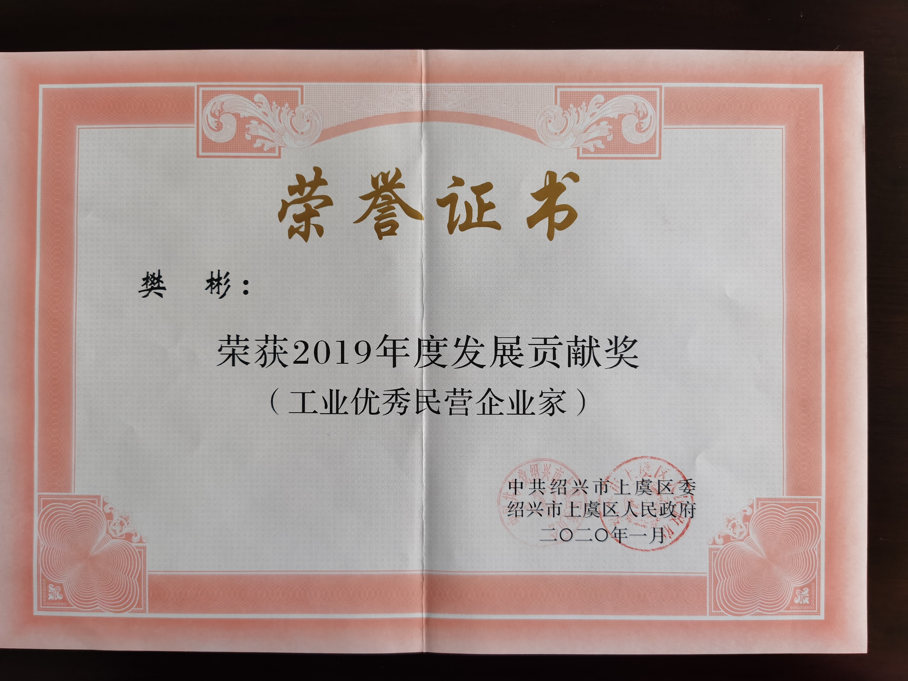隨后,項政委為樊彬董事長頒發(fā)了上虞區(qū)2019年度發(fā)展貢獻(xiàn)獎。 此項殊榮即是上虞區(qū)政府對董事長樊彬個人努力的褒獎,也是對揚(yáng)帆新材一年來為上虞經(jīng)濟(jì)發(fā)展所做貢獻(xiàn)的充分肯定。在過去的2019年,揚(yáng)帆新材在董事長樊彬的帶領(lǐng)下,腳踏實(shí)地、突破創(chuàng)新,緊跟時代的腳步,以現(xiàn)代化的經(jīng)營管理理念為指導(dǎo),實(shí)現(xiàn)了企業(yè)經(jīng)濟(jì)效益的穩(wěn)步提升。