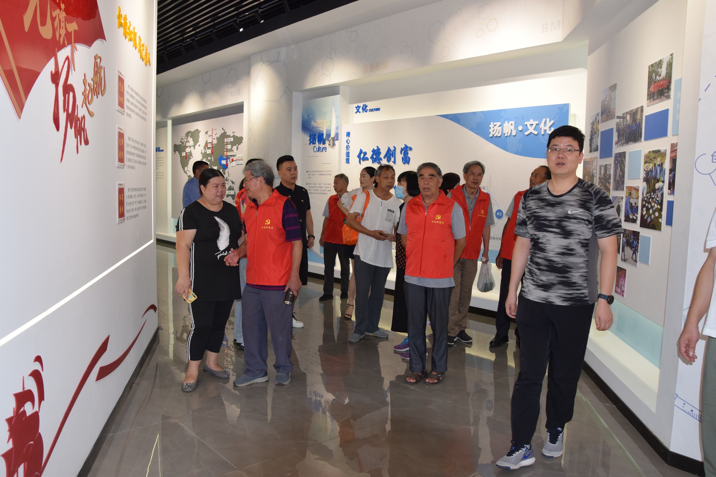 8月9日上午,載著老黨員的大巴車緩緩來到揚(yáng)帆新材上虞生產(chǎn)基地?;貜堄辣蚩偨?jīng)理帶領(lǐng)管理層熱情迎接老前輩的到來。在張總的陪同下,各位老黨員先后參觀了企業(yè)發(fā)展(產(chǎn)品)展示廳、黨建展廳、公司中控室和生產(chǎn)現(xiàn)場。在企業(yè)發(fā)展展廳,老黨員們駐足觀看 ,一張張老照片、一幅幅新場景,讓老黨員感受到了公司的巨大變化和飛躍發(fā)展。“不一樣了”是其中出現(xiàn)的一個(gè)高頻詞匯,回憶著自己在壽爾福工作的舊年時(shí)光,老黨員們頗多感觸,大家憶往昔歲月,談變化,談感想,都衷心祝愿公司發(fā)展越來越好。