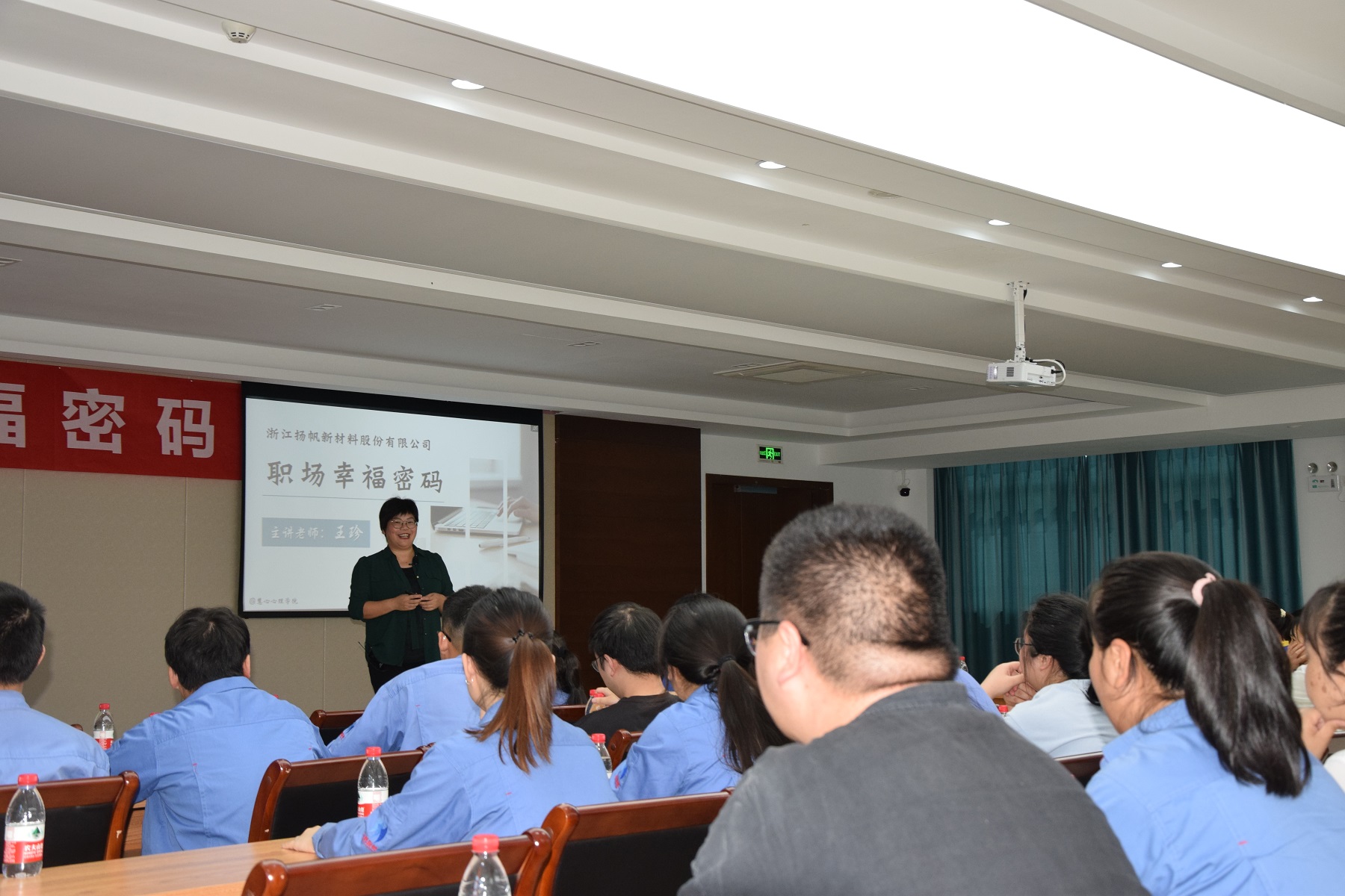 2020年9月8日下午,揚帆新材上虞生產基地在研發(fā)大樓三樓培訓室開展了職工心理健康培訓講座。由工會邀請的慧心心理學院王珍老師為職工們帶來了一場精彩紛呈的“職場幸福密碼”培訓講座。
