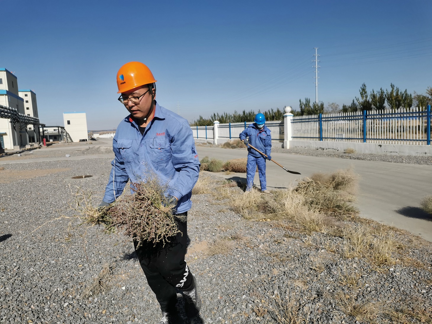 為防患于未然,黨支部和工會決定對這類枯草展開全面清理。十月下旬的阿拉善,寒風已有些刺骨,而生長于沙漠戈壁地帶的草類莖干強硬且?guī)Т蹋謇聿灰?。盡管如此,全體黨員和工會骨干不怕苦,不畏難,積極發(fā)揮帶頭作用,為漸入寒冬的漫漫戈壁增添了一抹亮麗的黨旗紅。