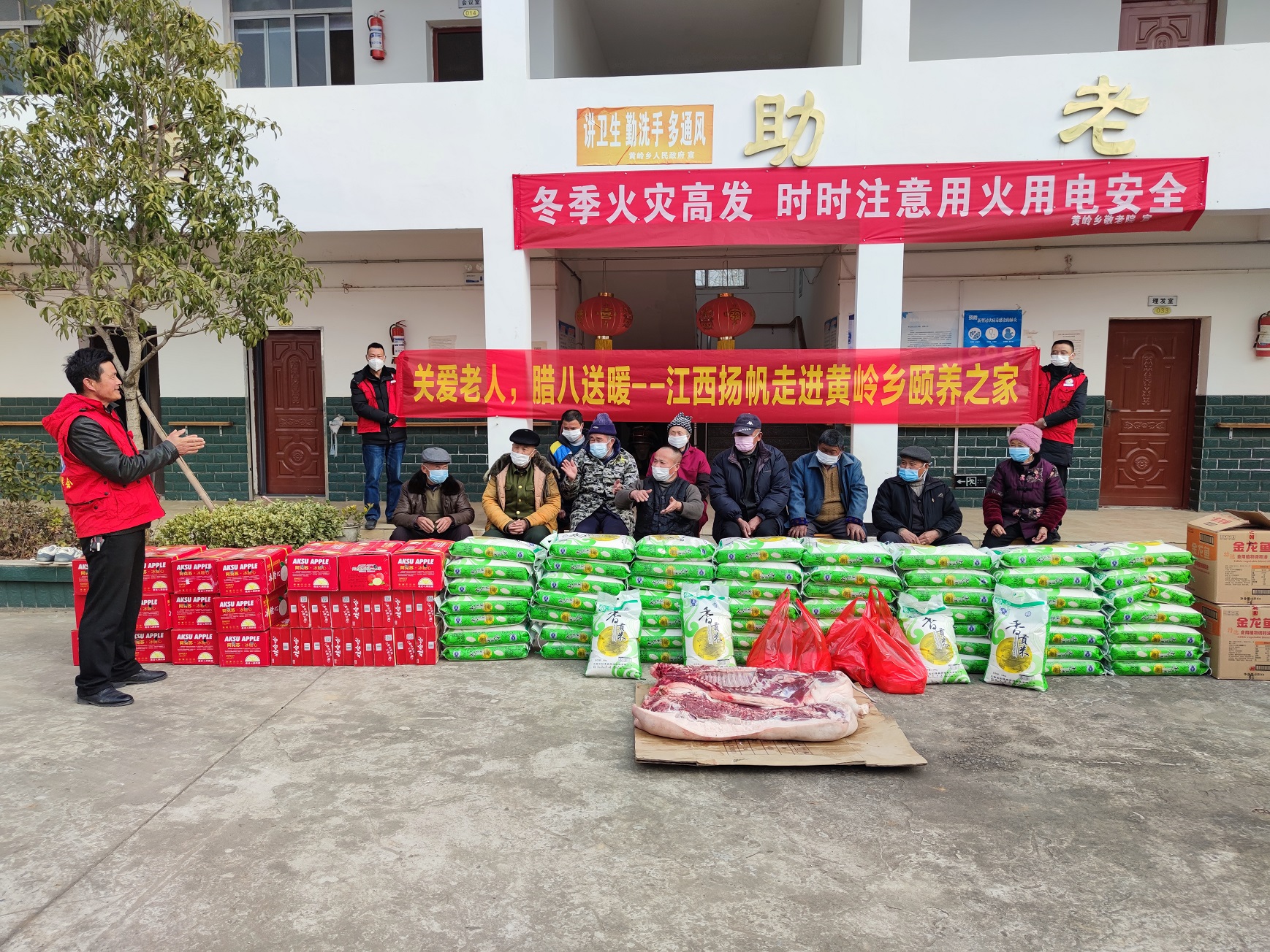 關(guān)愛老人,臘八送暖。臘八節(jié)當(dāng)天上午,時任彭澤縣新聯(lián)會副會長的浙江揚帆新材料股份公司副總裁陶明,帶領(lǐng)新聯(lián)會部分會員走進黃嶺鄉(xiāng)頤養(yǎng)之家走訪慰問,為老人們送去豬肉、大米、油、八寶粥、蘋果等生活物資,讓困難老人真切感受到節(jié)日的溫暖與關(guān)懷。