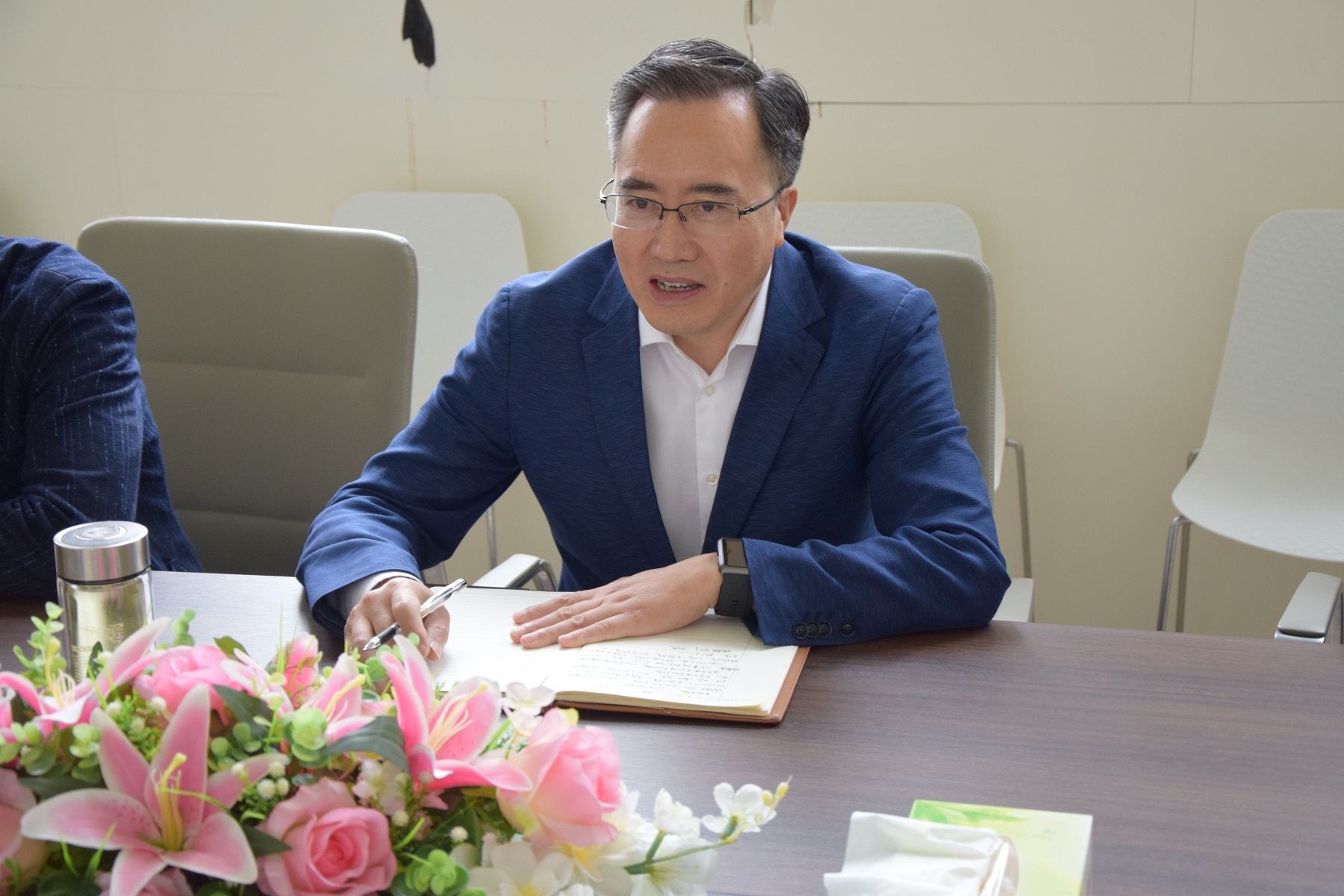 會上,趙文中主席詳細聽取了企業(yè)經(jīng)營發(fā)展情況的介紹,深入了解了企業(yè)在產(chǎn)品研發(fā)銷售、智能化改革、物流運輸、員工管理、人才引進等方面的情況,詢問企業(yè)存在的難題。