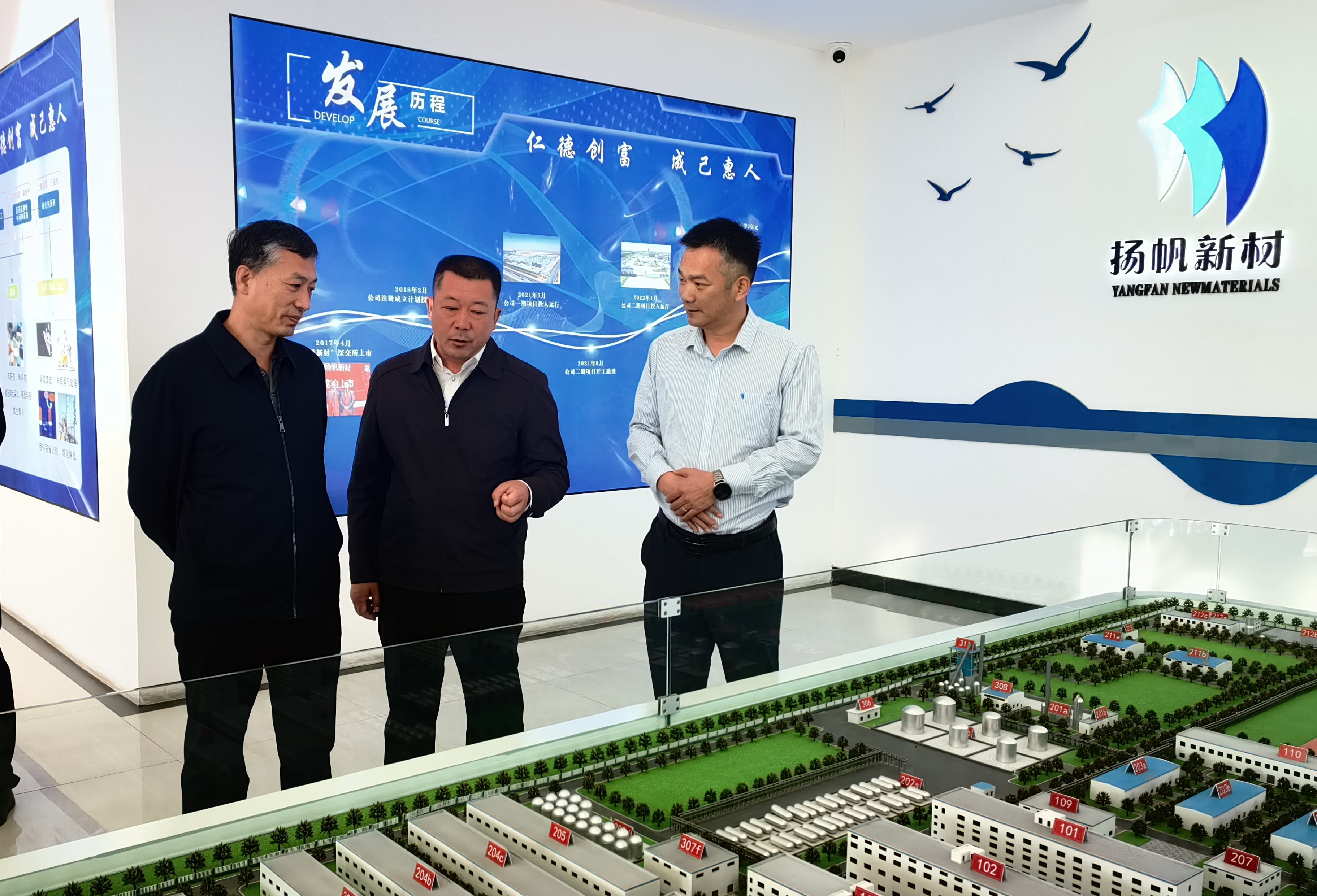 在公司展廳,包副盟長對公司的發(fā)展歷程、項(xiàng)目(產(chǎn)品)介紹、廠區(qū)規(guī)模和企業(yè)文化逐一進(jìn)行了了解,揚(yáng)帆新材常務(wù)副總裁劉輝圍繞公司產(chǎn)品、原料、市場以及發(fā)展現(xiàn)狀向工作組領(lǐng)導(dǎo)進(jìn)行了詳細(xì)的匯報(bào),包副盟長聽后,對企業(yè)的發(fā)展表示了肯定,并重點(diǎn)就企業(yè)發(fā)展過程中存在的困難以及需要政府解決的問題征詢了意見,鼓勵(lì)企業(yè)做好產(chǎn)品的同時(shí)對市場預(yù)期要充滿信心,特別強(qiáng)調(diào)企業(yè)生產(chǎn)一定要確保安全和環(huán)保這條底線,扎實(shí)推進(jìn)企業(yè)又好又快發(fā)展。