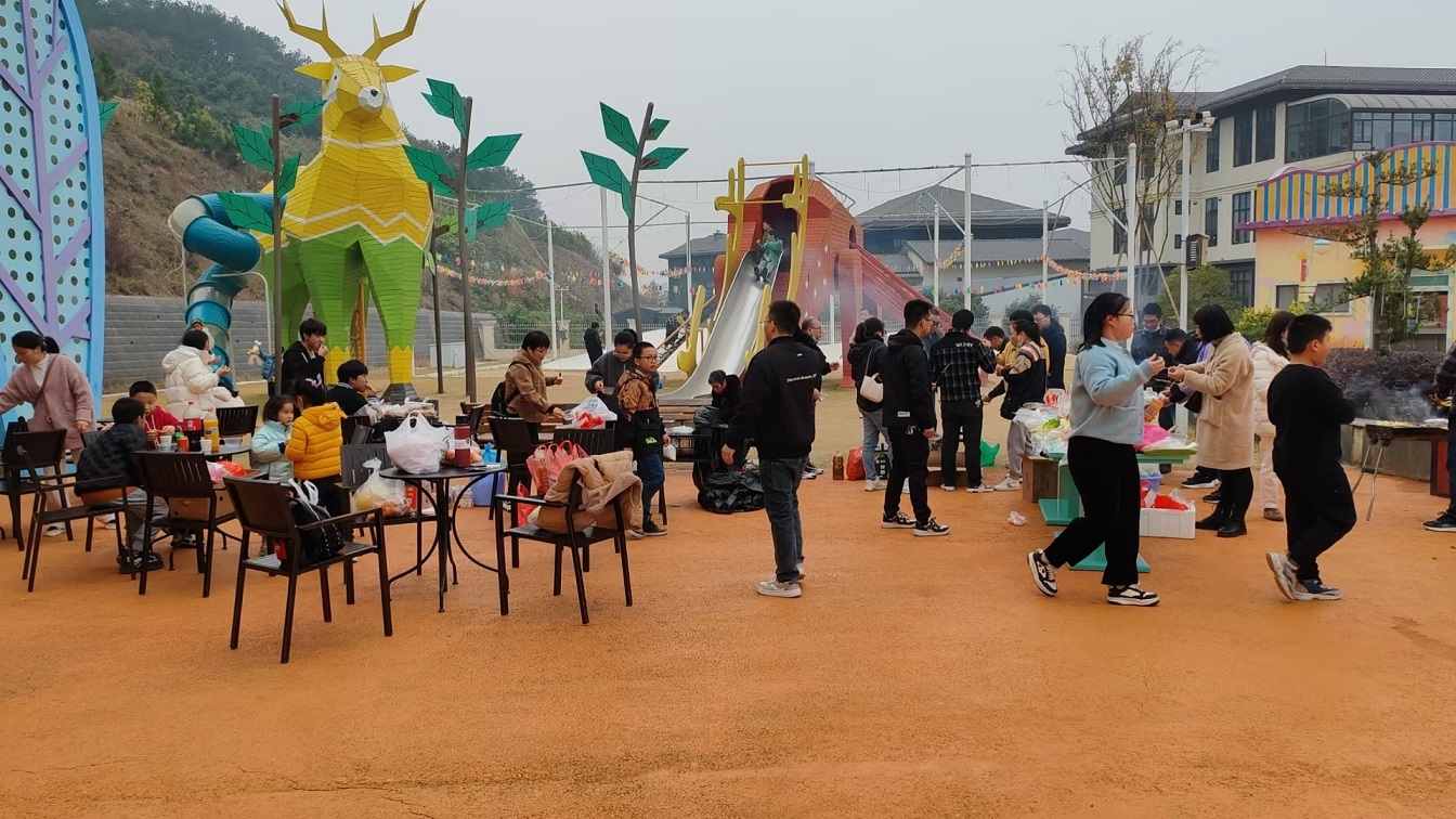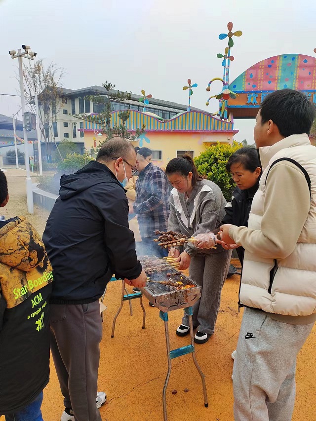 短暫休息后,開(kāi)始下午的燒烤活動(dòng),大家自已動(dòng)手、分工合作:起火燒炭、擺桌串串、燒烤、分享食物……