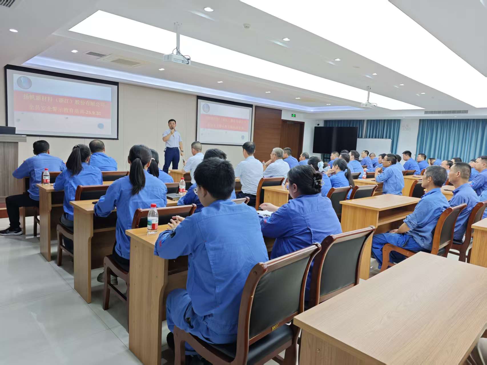 9月30日下午,揚(yáng)帆新材料(浙江)股份有限公司在研究院三樓會(huì)議室組織開(kāi)展了全員安全警示教育培訓(xùn)活動(dòng)。此次培訓(xùn)由環(huán)安總監(jiān)舒國(guó)棟主持,董事長(zhǎng)樊彬、總裁陶明出席并作出重要指示,公司全體員工參加培訓(xùn)。